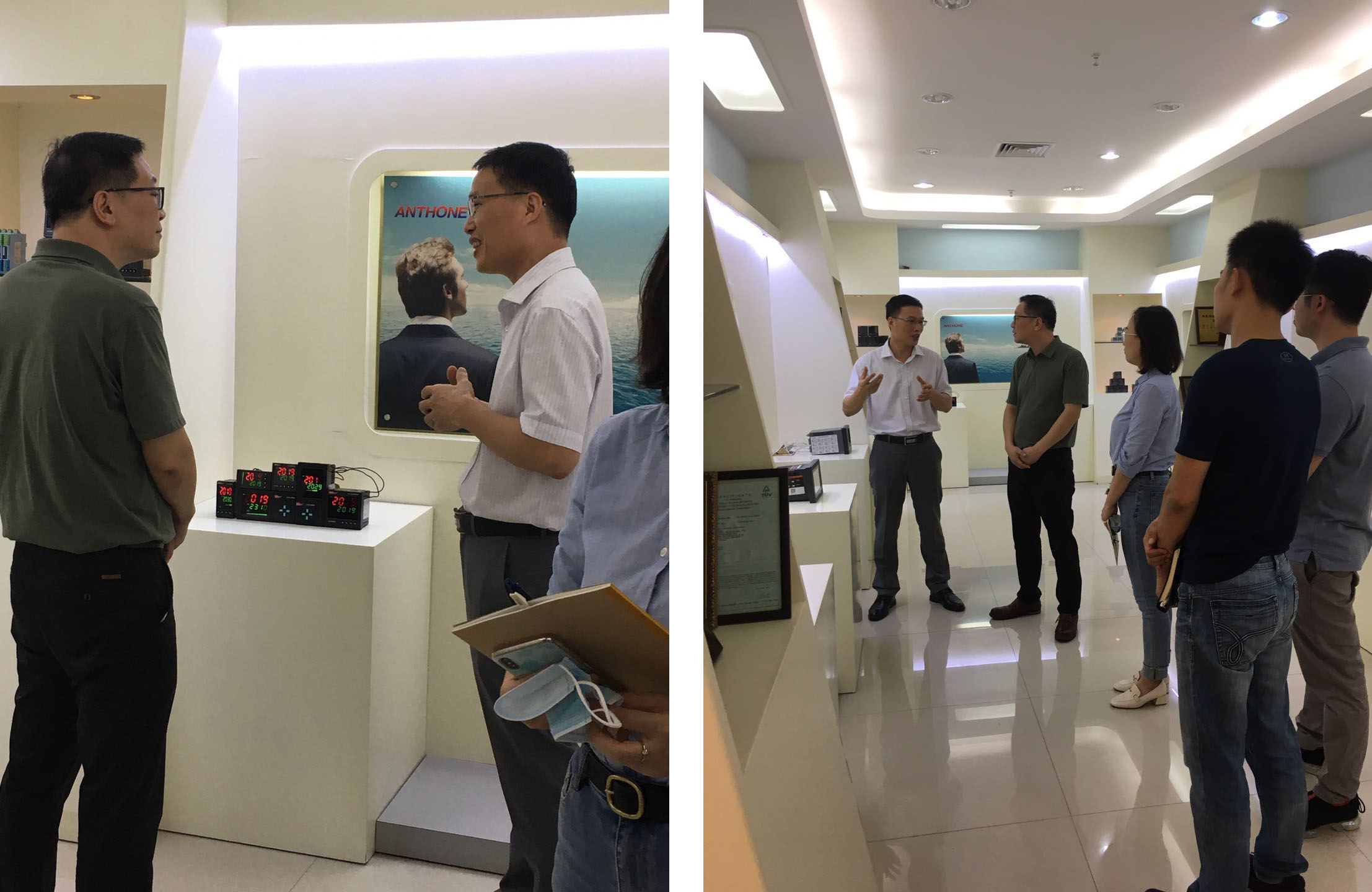 首先,廈門安東電子有限公司總經理肖國專先生陪同領導們參觀了產品展廳,先介紹了智能電力監(jiān)測儀的功能及用途,應用于廈門地鐵項目及樓宇建筑項目的情況。接著介紹了觸摸屏無紙記錄儀,主要用于工業(yè)行業(yè)的溫度、壓力測量記錄,并介紹了最新研發(fā)的與互聯(lián)網結合的模式,可對產品進行遠程維護,特別是疫情期間可以不出門就能解決問題,領導們給予極大的贊許。隨后,介紹了溫控表和壓力變送器產品,重點提到熔噴布生產設備上起到的作用,結合時事需求,不斷研發(fā)與時俱進,研發(fā)就是企業(yè)的第一生命力,得到領導們的認可。