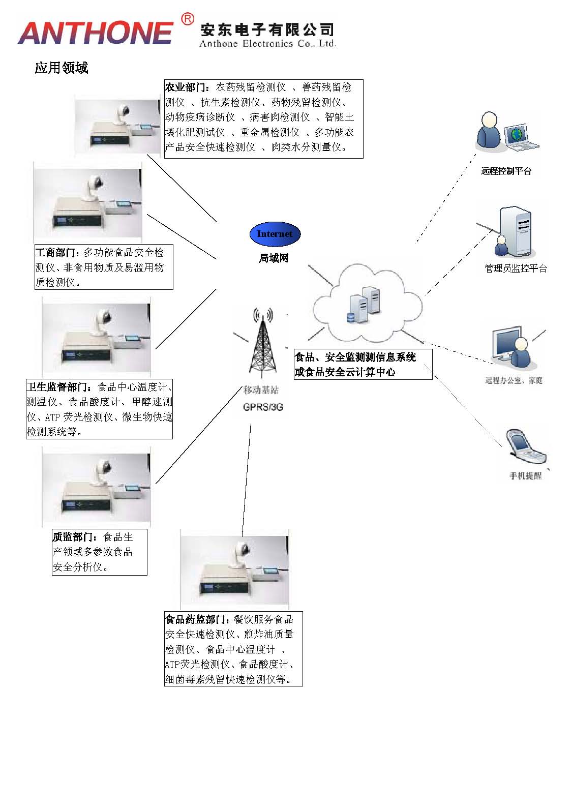ANTHONE物聯(lián)食品安全裝置與系統(tǒng)原理:  通過物聯(lián)網(wǎng)技術(shù),對食品的各項關(guān)鍵數(shù)據(jù)進行采集、存儲,實現(xiàn)數(shù)據(jù)分析和智能處理,形成完整的數(shù)據(jù)庫,可提供一致、高效的數(shù)據(jù)查詢、追溯機制。實現(xiàn)市場動態(tài)控制,食品安全動態(tài)控制,構(gòu)建信息監(jiān)測和通報網(wǎng)絡(luò)體系。