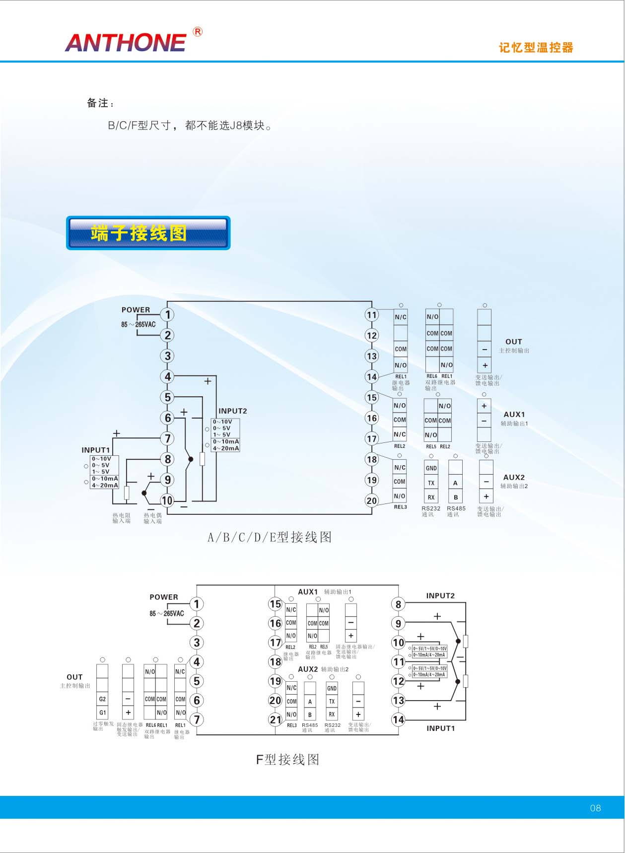 輸入規(guī)格:K,S,B,T,E,J,Wre325,N,Pt100,Cu50,Cu100,0-10mA,4-20mA,0-5V,1-5V