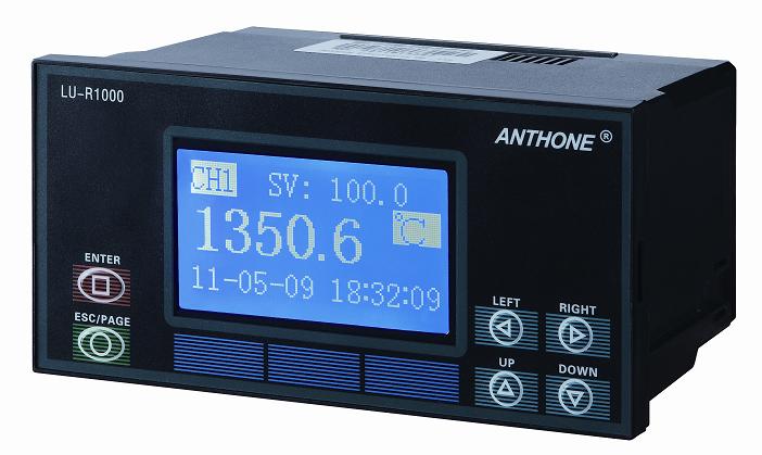 LU-R1000單色液晶顯示控制無紙記錄儀,集記錄與控制于一身,具有全切換萬能輸入:流量、熱電偶、熱電阻、標(biāo)準(zhǔn)電壓和標(biāo)準(zhǔn)電流信號;具有位式控制、報警、饋電等輸出功能