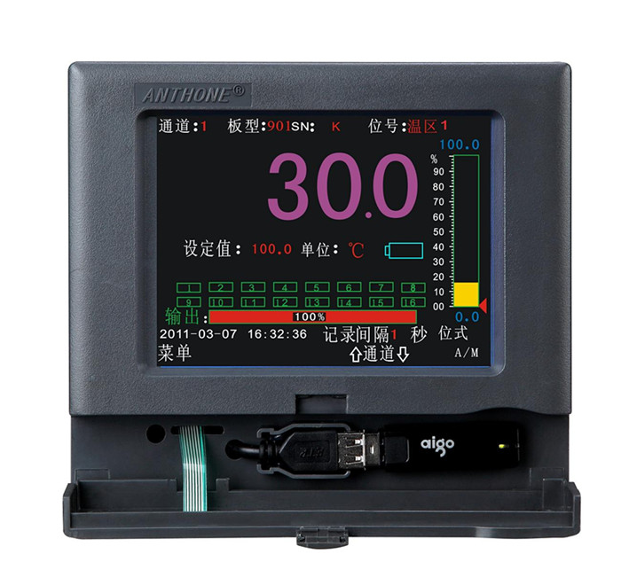 LU-C3000系列彩色液晶顯示過程控制無紙記錄儀,可以為一至八通道可編程PID控制,程序控制曲線多可達(dá)一百段的無紙記錄儀。儀表輸入為全切換萬能輸入,可輸入熱電偶、熱電阻、標(biāo)準(zhǔn)電流等信號,可提供饋電輸出。直接連接微型打印機(jī)、彩色噴墨打印機(jī),可同時打印多條曲線,可打印用戶指定時間的實(shí)時歷史數(shù)據(jù)及曲線;通過RS232通訊接口與便攜計(jì)算機(jī)、掌上電腦(PDA)連接,直接讀取儀表歷史數(shù)據(jù),再傳給計(jì)算機(jī),通過數(shù)據(jù)管理軟件,可對所取數(shù)據(jù)進(jìn)行分析、存檔、打印、處理。通過RS485通訊接口,可與組態(tài)王、MCGS等專業(yè)組態(tài)軟件組成實(shí)時監(jiān)控系統(tǒng)。并采用現(xiàn)代USB接口技術(shù),直接將數(shù)據(jù)存儲于U盤,記錄時間更長。