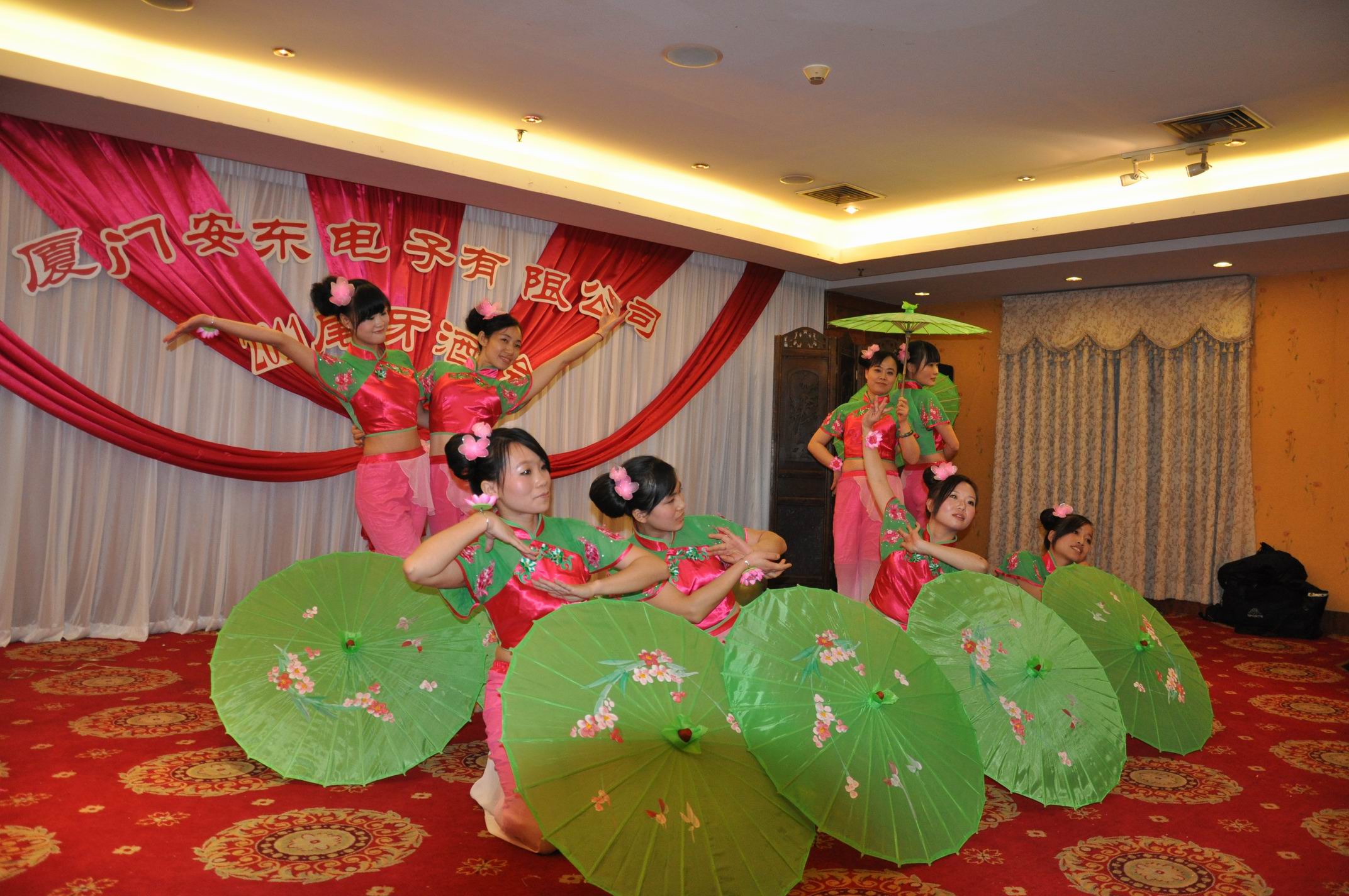 首先出場(chǎng)的電力二部同事們以寓意富貴吉祥的抓錢(qián)舞給大家起了個(gè)好彩頭,他們充滿(mǎn)活力的舞姿與燦爛的笑容將歡樂(lè)填滿(mǎn)整個(gè)會(huì)場(chǎng)。而一襲古典旗袍姿態(tài)優(yōu)雅、手提紅燈籠的人力部同事帶來(lái)的歌曲更是將喜慶傳遞給了每個(gè)人。紅燈籠意味著大家來(lái)年紅紅火火,中國(guó)喜逢龍年,《歡樂(lè)中國(guó)年》恰與這一含義趣味融合。輕柔委婉的《荷塘月色》在喧嘩熱鬧的歌曲過(guò)后悠然響起,八位踩著輕盈腳步的舞者緩緩而出。手系紅蓮,輕踮腳尖,粉紅的裙擺加上旋轉(zhuǎn)的小綠傘,帶出荷蓮的嬌弱與風(fēng)情,令人仿佛進(jìn)入一片荷池,無(wú)法不細(xì)細(xì)聆聽(tīng)那水的清幽,不細(xì)細(xì)品味那蓮的高雅。當(dāng)大家剛從一片寧?kù)o中醒過(guò)來(lái),詼諧風(fēng)趣的小品已經(jīng)上演。品管部的兩位小伙子將傳統(tǒng)的銷(xiāo)售方式、高科技發(fā)展中不斷改變的行銷(xiāo)方式在小小的舞臺(tái)上一一展示,他們幽默的對(duì)話(huà)使大家不約而同地爆笑起來(lái),晚會(huì)的上半場(chǎng)止于一陣陣掌聲中。