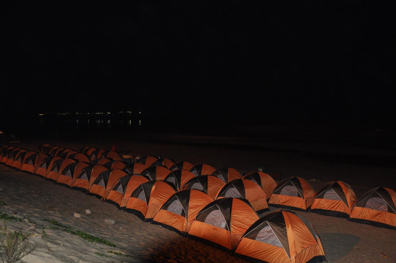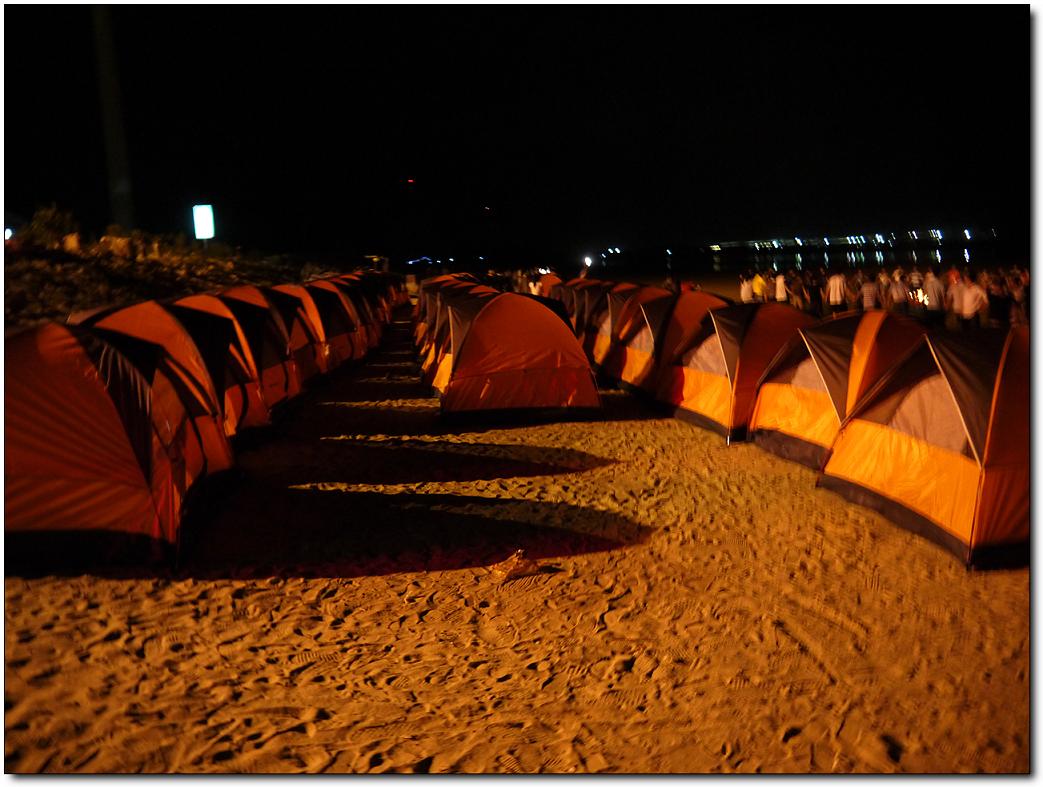 快樂的時光總是過得特別的快,轉(zhuǎn)眼間已到了23:00點(diǎn)了,這海灘上留下我們的足跡留下我們的歡聲笑語,但美好的記憶和愉快的心情被帶回來了,而且還將延緩著。23:00點(diǎn)大家興高彩烈的情緒中結(jié)束了燒烤與戲水游戲,各自回到自己的帳篷,自由活動,有的開始休息養(yǎng)好精神等待明天的到來,有的幾個一塊玩牌。我靜靜躺下聽著窗外的徐徐的海風(fēng)聲。這時,感覺很疲倦的作用下,我開始有了困意,最先鉆進(jìn)帳篷休息了,在帳篷里,聽著他們調(diào)侃著,也跟著竊笑,打開手機(jī)上網(wǎng)和在線的群友聊聊,大約一個小時我就下線了,我閉上雙眼,感覺真愜意啊,在海邊里,我們以天為房,以地為床,跟大地零距離的貼近著,聆聽著海水的天籟之聲,聞著泥土的芳香,遠(yuǎn)離喧鬧的城市,在這靜靜的沙灘上,盡情的感受著大自然的氣息。這是多么令人心曠神怡的美好生活??!對于久居城市的人來說,面對現(xiàn)代生活的壓力,露營對于我們來說多具有誘惑力啊。實(shí)際上,這份頗具個性化和具有代表性的戶外活動,讓我們充分回歸自然,親近自然。