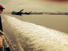 曾經(jīng)去過海邊,卻是第一次站在甲板上,吹海風(fēng),看那秋水共長天一色。 大海的魅力真是無窮,站在甲板上,望著無邊的大海,心胸隨之開闊,煩惱也隨之而去。真的到了海上,才明白,站在海邊瞭望的大海,遠(yuǎn)不如真正站在游艇的甲板上在海平面上疾馳來的快意、來的夢幻。孕育了整個人類文明的海洋,以它的胸懷,收容了渺小的我心中那些渺小的煩惱,讓人不由得笑容浮上臉頰。這“秋水共長天一色”作為小嶝島游的開胃菜,不得不點32個贊,真是脾胃大開,充滿期待。