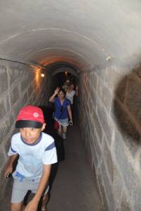 在表面看來,這也就是一個陰冷潮濕的山洞,和大家排著隊走在這條通道里的時候,大家歡聲笑語,也緩解了防空洞的陰森感。但當(dāng)穿過防空洞,來到放有老照片的紀(jì)念館里,回身看看那個依然陰森的防空洞,不由得豎然起敬,就是這個我們當(dāng)做景點的地方,曾經(jīng)無數(shù)次的救了無數(shù)人的性命。我想,這就是站在歷史的節(jié)點才能感受到的歷史的分量吧。