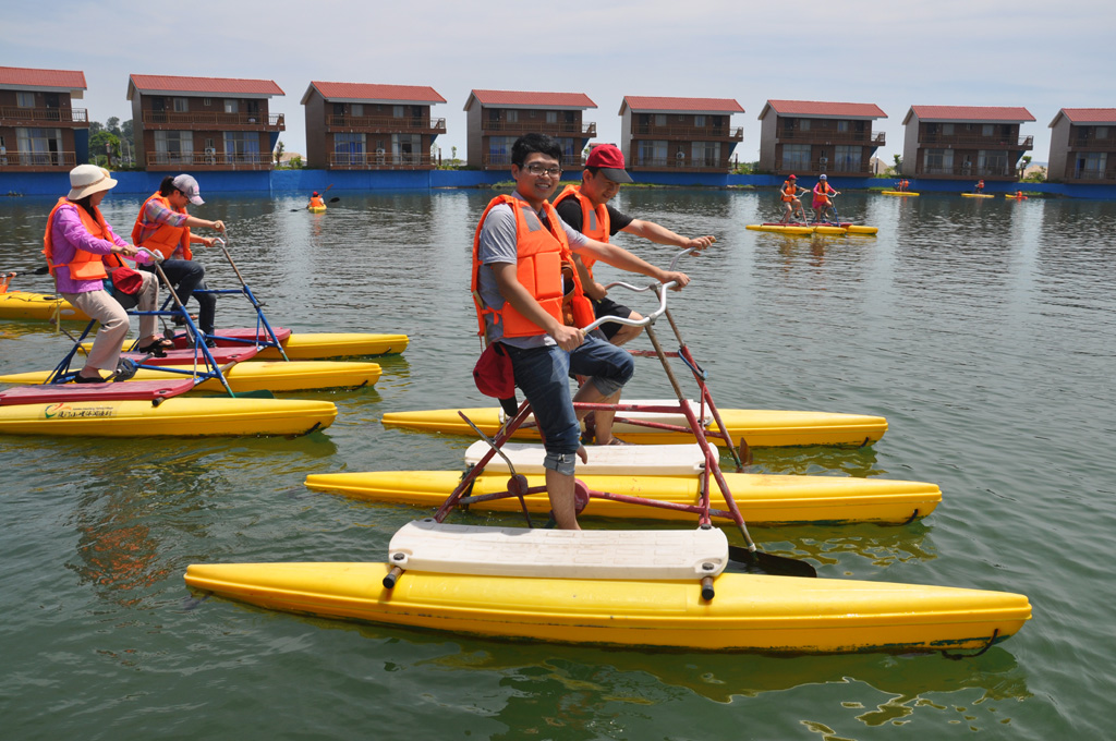 時間很快到了中午,午餐安排在了休閑漁村,導(dǎo)游介紹了下午的旅游行程和注意事項后,大家就開始品嘗著當(dāng)?shù)靥厣暮ur美食。一餐美食之后,大家就又開始了新一輪的游玩,大家各自選擇漁村配套的娛樂設(shè)施(包括水上自行車、鹽浴、皮劃艇等),通過這些項目,我們大家不僅更好的增加了彼此之間的感情,也更能的體會到了團(tuán)隊合作的重要性。