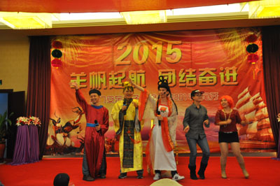 魔術(shù)表演雖然效果簡(jiǎn)單,但是里面卻頗具玄機(jī),利用數(shù)學(xué)知識(shí)設(shè)計(jì)的小騙局,讓你解開(kāi)后會(huì)心一笑。兩位美女的熱舞青春有力,節(jié)奏分明,讓底下一眾男士臉紅心跳,口哨不斷。雙簧表演更延續(xù)了去年的經(jīng)典,兩位年輕演員比去年水準(zhǔn)更上一層,配音者語(yǔ)調(diào)輕快有趣、表演者表演的惟妙惟肖。而隨后的話劇和創(chuàng)意舞蹈更是將晚會(huì)推向高潮,話劇內(nèi)容更是充滿創(chuàng)意,原創(chuàng)的內(nèi)容加上夸張的妝容和表演,讓整個(gè)表演笑點(diǎn)不斷,現(xiàn)代古代的結(jié)合增加了穿越感和喜劇元素,引得臺(tái)下笑聲不斷,掌聲不停。創(chuàng)意舞蹈小人舞由幾位公司人氣員工表演,喜感的搭配,配上歡快的音樂(lè),搞笑的動(dòng)作,又將晚會(huì)推向了新一輪的高潮,大家忘我的故障、歡笑,早已忘記時(shí)間飛逝。快樂(lè)的時(shí)間總是短暫的,晚會(huì)也在歡聲笑語(yǔ)中進(jìn)入尾聲,大家忙著合影留念,掃去一年的疲憊、辛苦,消融了平時(shí)的拘謹(jǐn)和距離,這一刻大家真正的感受到了我們是一個(gè)大家庭,真正的感謝能夠來(lái)到安東,認(rèn)識(shí)大家。 在這一場(chǎng)熱鬧的晚會(huì)背后,我收獲的不僅僅是快樂(lè),更多的是感動(dòng),因?yàn)槲铱吹搅舜蠹遗啪毠?jié)目時(shí)候的熱情,看到了大家為了籌備晚會(huì)的付出,看到了大家表演時(shí)候的用心,看到了許多真心的笑容,這背后是安東人獨(dú)有的熱情、認(rèn)真、無(wú)私、奉獻(xiàn)。誠(chéng)然,一場(chǎng)尾牙不能改變什么,然而因?yàn)檫@場(chǎng)尾牙,想必更多的安東人會(huì)愛(ài)上這個(gè)家,也會(huì)更加明確公司的目標(biāo),為此擰成一股繩的去奮斗,經(jīng)過(guò)了今天,真切的感受到明天會(huì)更好!