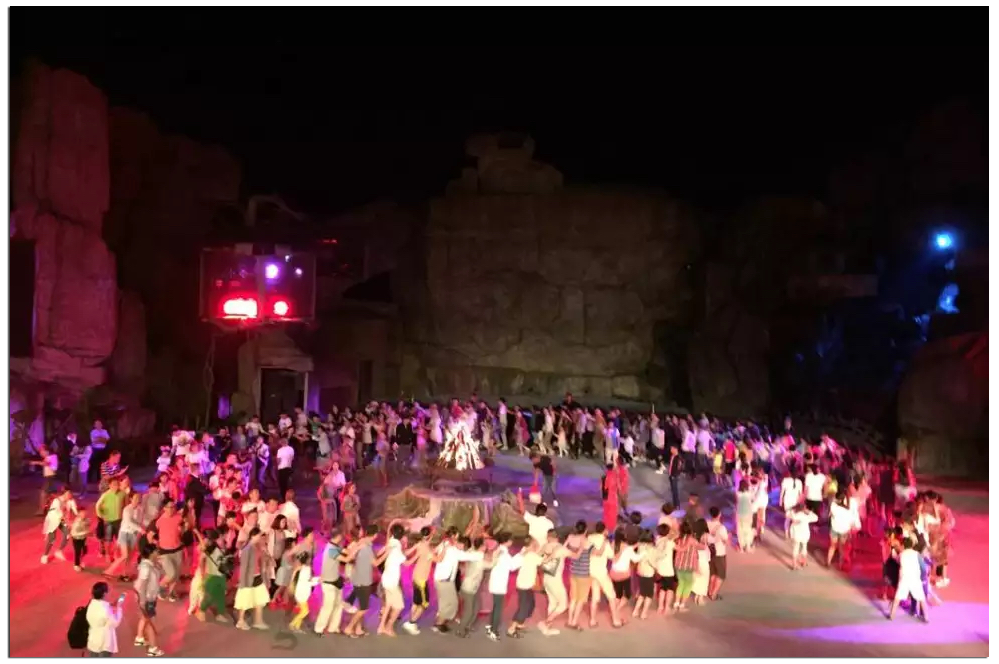 晚會(huì)有開場(chǎng)的草裙舞、樹葉吹奏表演、雜技表演、火把絕技表演;節(jié)目精彩絕倫,配上背景不斷變化的燈光,高山流水及噴泉,襯托的恰到好處。隨著篝火的點(diǎn)燃,和觀眾互動(dòng)環(huán)節(jié)開始了,大家在篝火前圍成了大圈,隨著音樂,跟著最前面的演員一起跳起了草裙舞,還有熟悉的兔子舞。很久很久沒有這么放松過了,真是個(gè)難忘的夜晚。